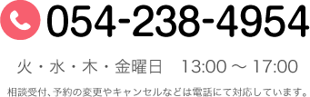 | 受理面接 | 3,000円 | 相談申込後にお困りの内容を詳しくお伺いし、その後の方針を検討するための面接 |